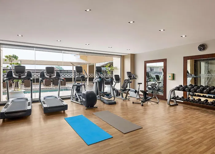 Residents are offered a swimming pool and fitness classes for a surcharge. Beach facilities at the modern Marriott include loungers and parasols. Alternatively, guests can exercise in a fitness area. You can also relax with beauty therapy, body wraps, and body scrub, and visit a wellness area on site.